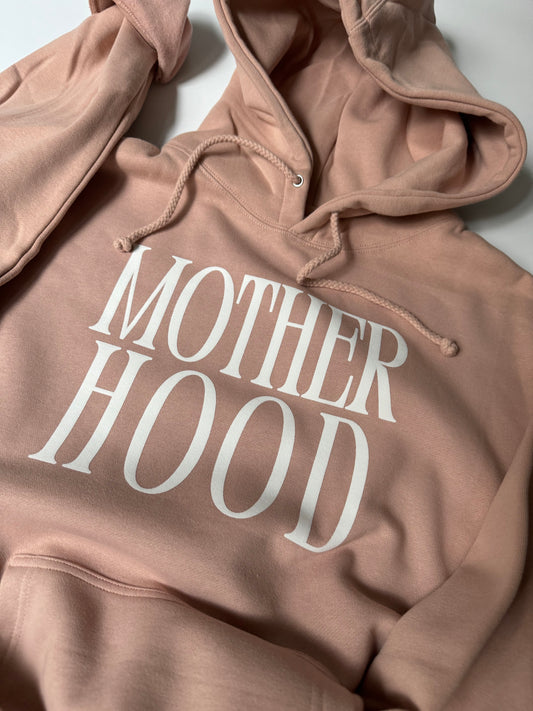 Motherhood Heavyweight Hoodie – Dusty Rose Minimalist Graphic Sweatshirt for Women & Moms